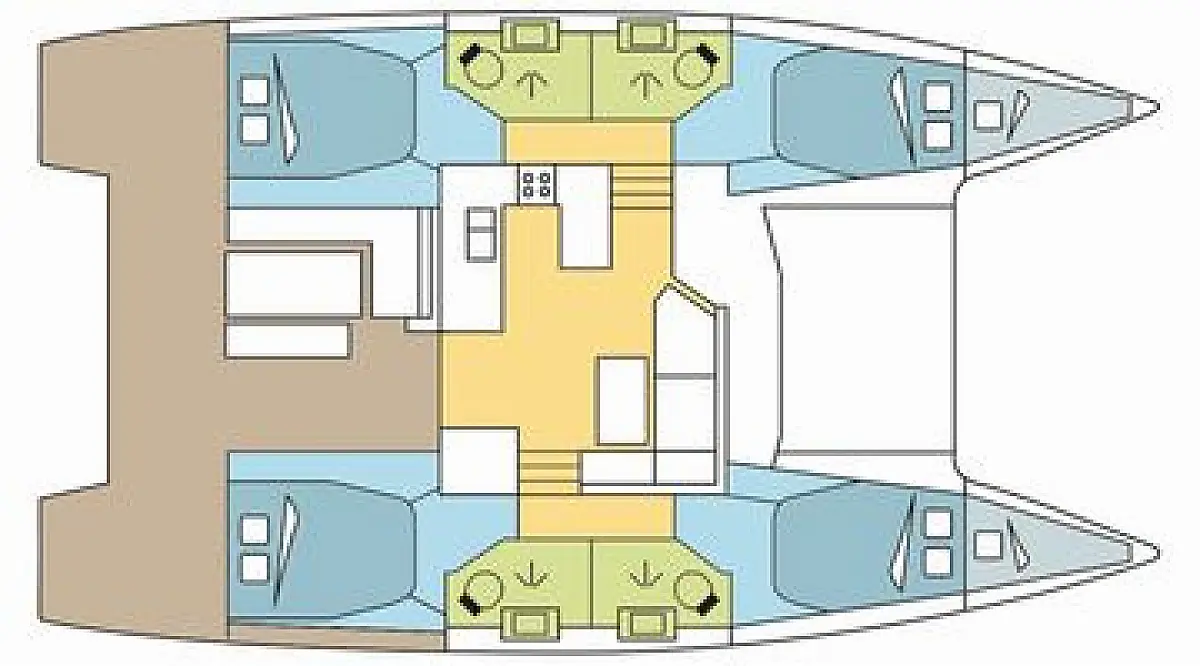 Tool kit, Engine oil, Essential spare parts, Sail repair kit, Inverter, Generator, Batteries (2x200 AH lithium)